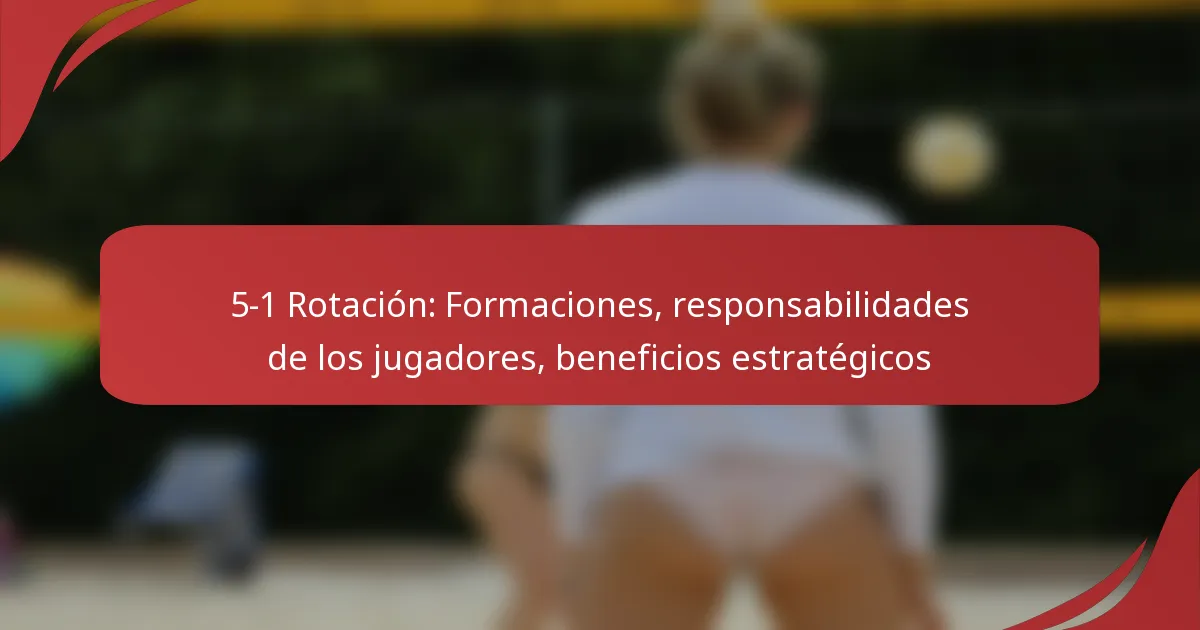 La rotación 5-1 es una formación táctica comúnmente utilizada en deportes como el voleibol y el baloncesto, donde cinco jugadores están posicionados estratégicamente mientras un jugador rota a través de varios roles. Esta configuración no solo mejora las capacidades ofensivas y defensivas, sino que también permite a los equipos aprovechar sus fortalezas contra las debilidades de los oponentes. Cada jugador tiene responsabilidades definidas, con un único colocador gestionando la creación de juego a lo largo del partido, lo que lleva a oportunidades de anotación mejoradas y un movimiento de balón efectivo.