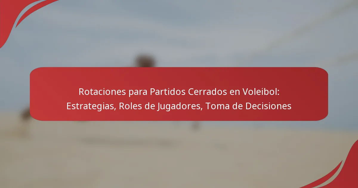 En partidos de voleibol cerrados, las estrategias de rotación efectivas son esenciales para maximizar las fortalezas del equipo y minimizar las debilidades. Cada jugador tiene un rol específico que contribuye tanto a las tácticas ofensivas como defensivas, lo que hace crucial que los equipos comprendan estas dinámicas. La toma de decisiones estratégicas, informada por observaciones en tiempo real y el rendimiento de los jugadores, permite a entrenadores y jugadores adaptar sus rotaciones y mejorar sus posibilidades de éxito.